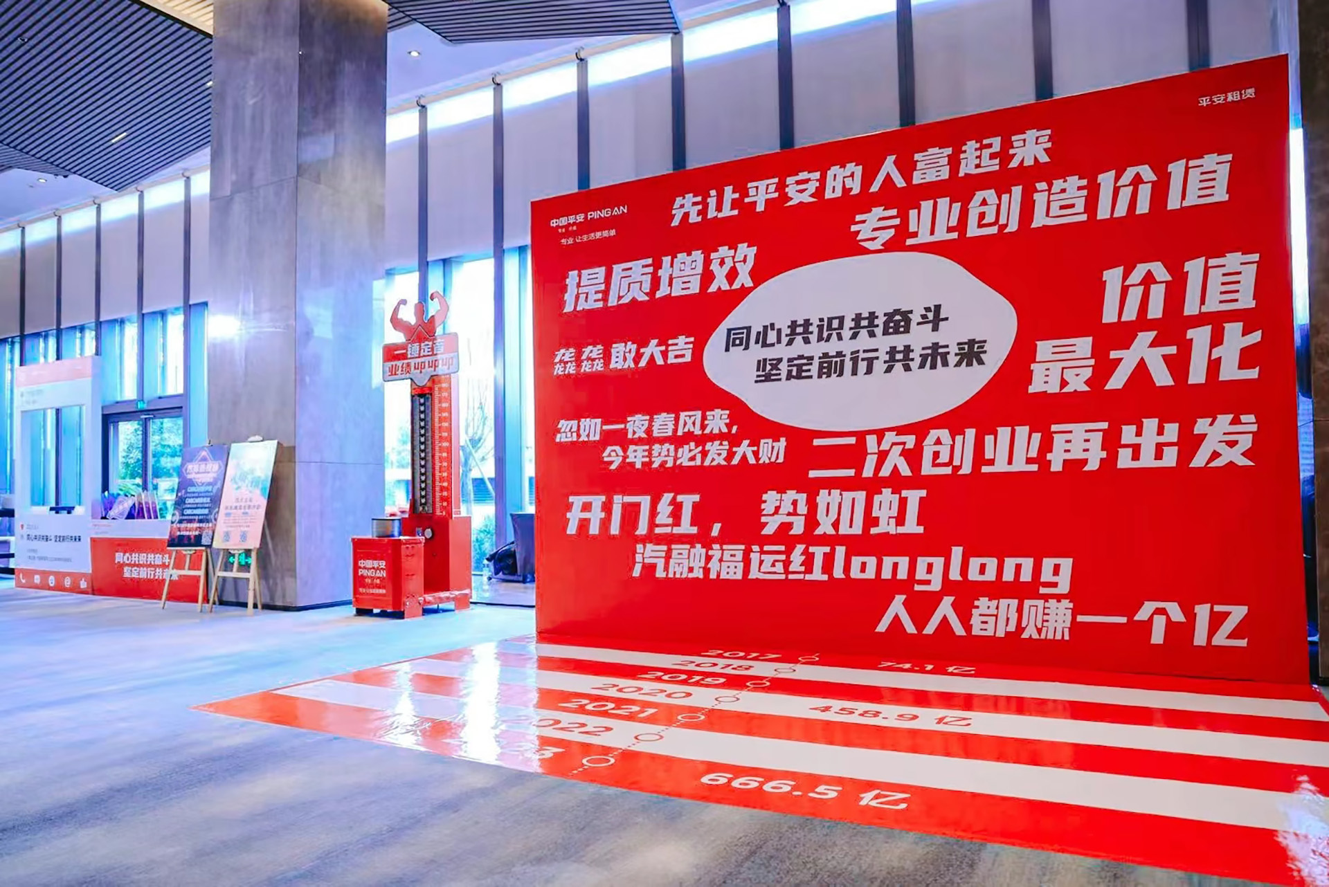 外场布置:“一锤定音”,敲响的是必胜的决心。 当同事们挥动鼓槌,在定音锣上敲出清越激扬的声响,那一刻,不仅是业绩目标的庄严确认,更是所有人内心斗志的共振与轰鸣。这声音,是承诺,亦是开局。